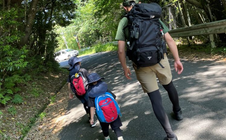 キャンプ雨がしとしと降る、6月の火祭りキャンプ 雨上がりの散策、夏の川遊び、どんな時でもKEENのニューポートH2が子どもの足を守ります。アウトソールの刻みのグリップ力が抜群!2023.06.21キャンプ