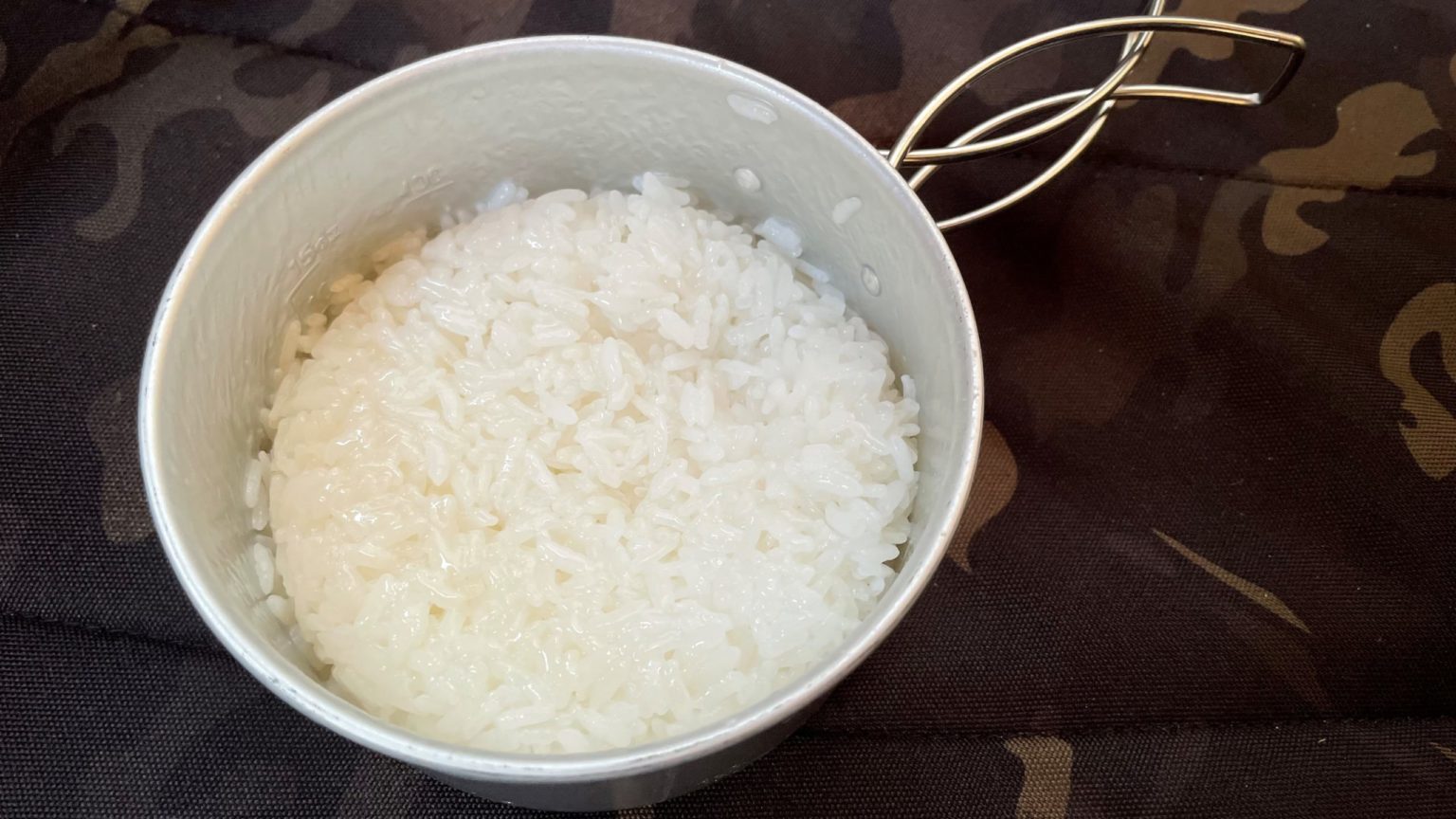 たくさん炊く時は、炊飯用のクッカーを使用していますが、朝食用に少ししか炊かない時は、スノーピークの『アルミパーソナルクッカーセット(SCS-020R)』を使用しています。